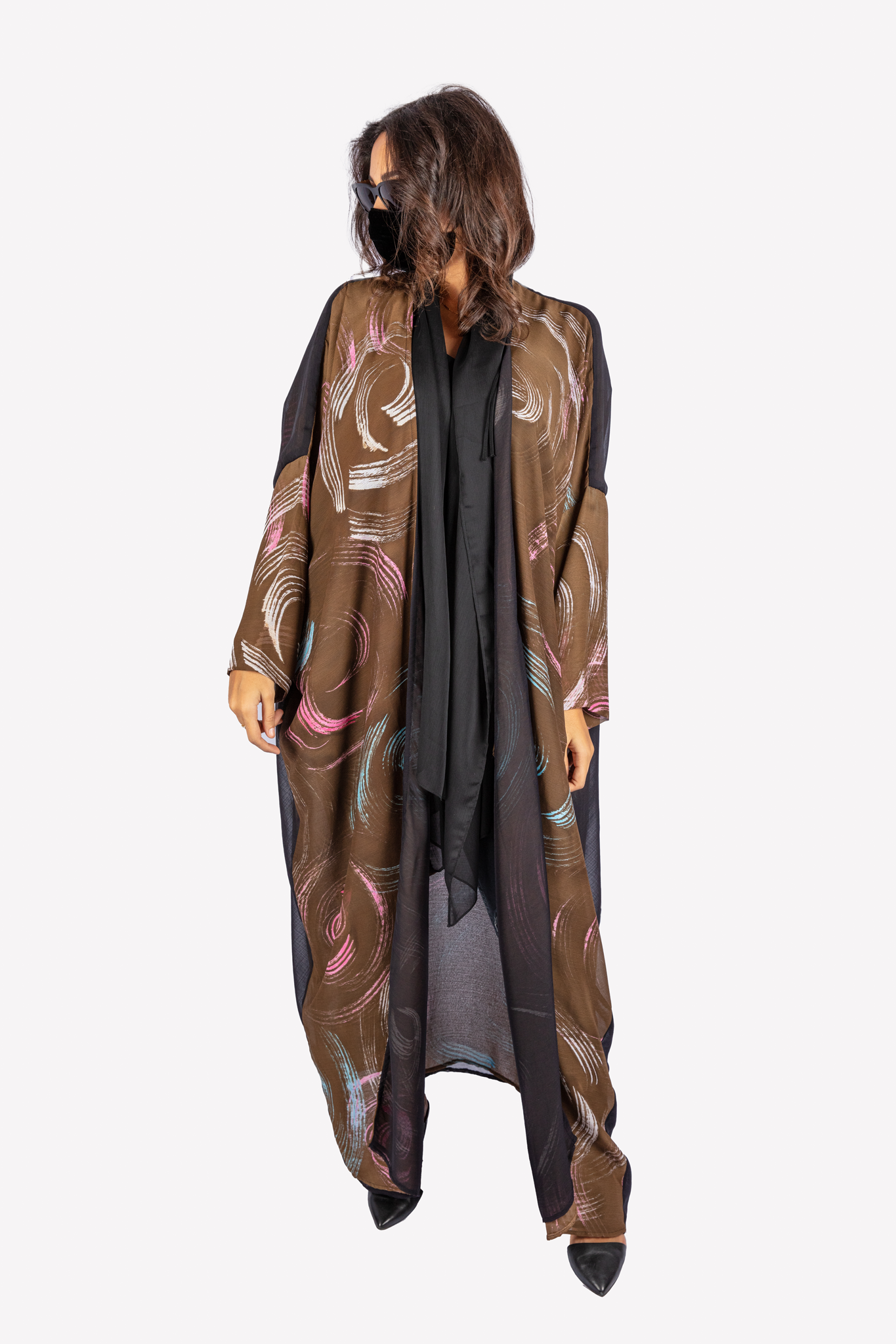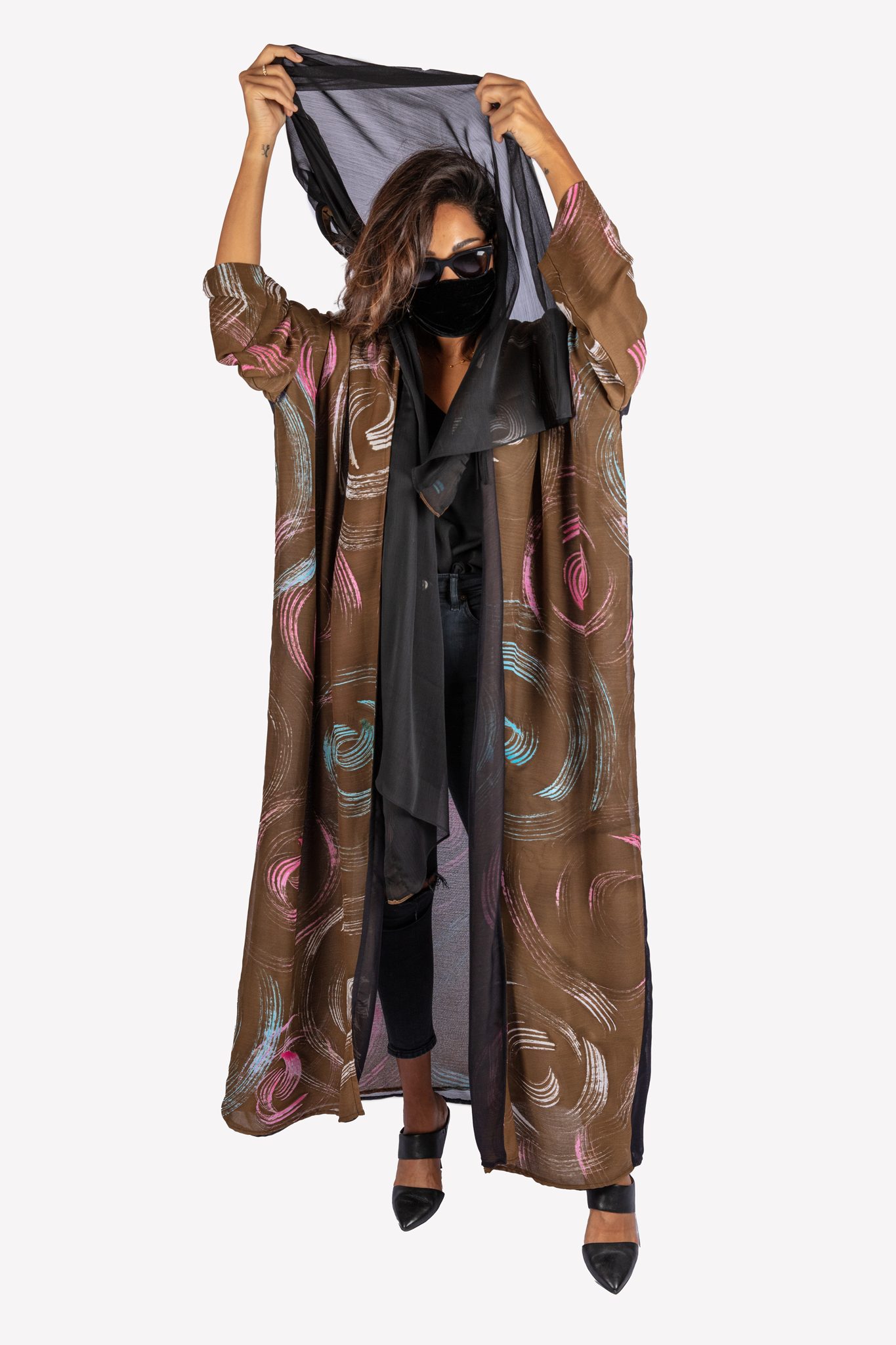 Wear this abaya two ways, wear the floral side out or the black side out .includes a head scarf and a mask