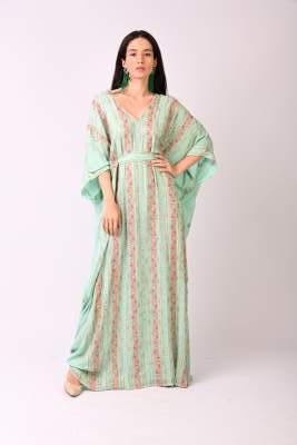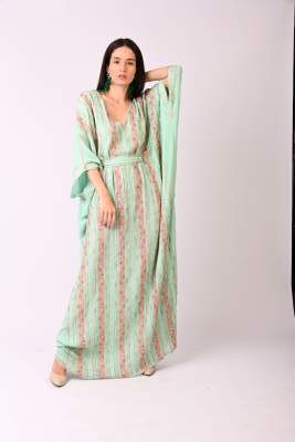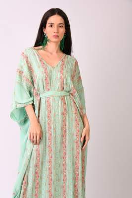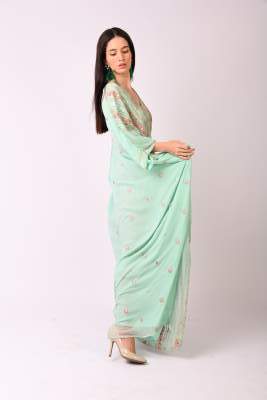 Embroidered silk chiffon, sary kufttan pistachio color fresh and elegant